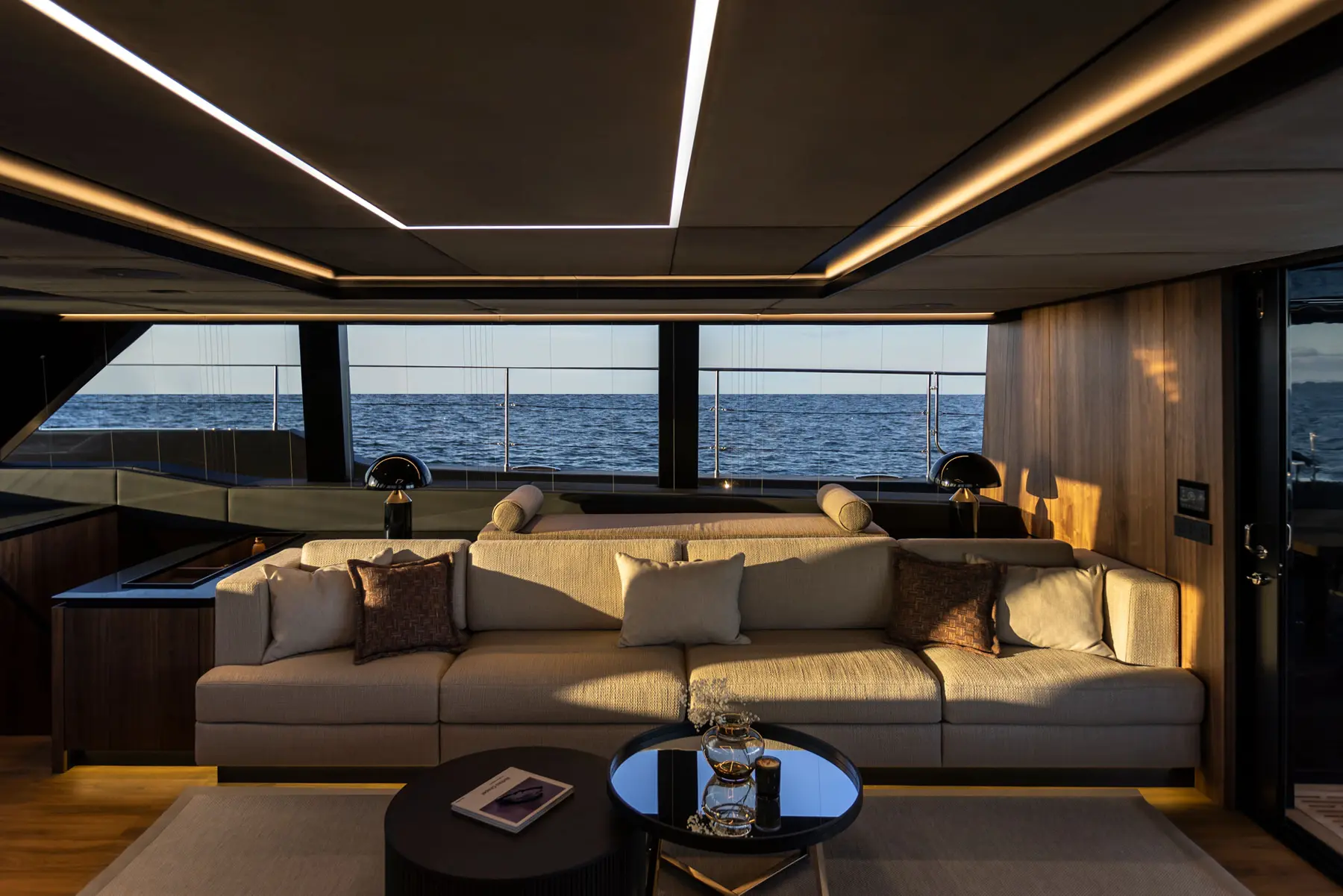 Der 70 Sunreef Power lässt keine Wünsche offen. Er vereint Eleganz und Funktionalität dank seiner zahlreichen Möglichkeiten der Individualisierung. Er verfügt über einen halb-offenen Salon, eine geräumige Bugterrasse und ein innovatives Achtercockpit mit reichlich Platz für Essen im Freien und Wassersport. Die Flybridge bietet Luxus auf höchstem Niveau und wird auf Wunsch mit einem Spa-Pool, einer Bar, einem Essbereich und Sonnenpolstern ausgerüstet. Erhältlich in beiden Versionen, Eco und klassisch.