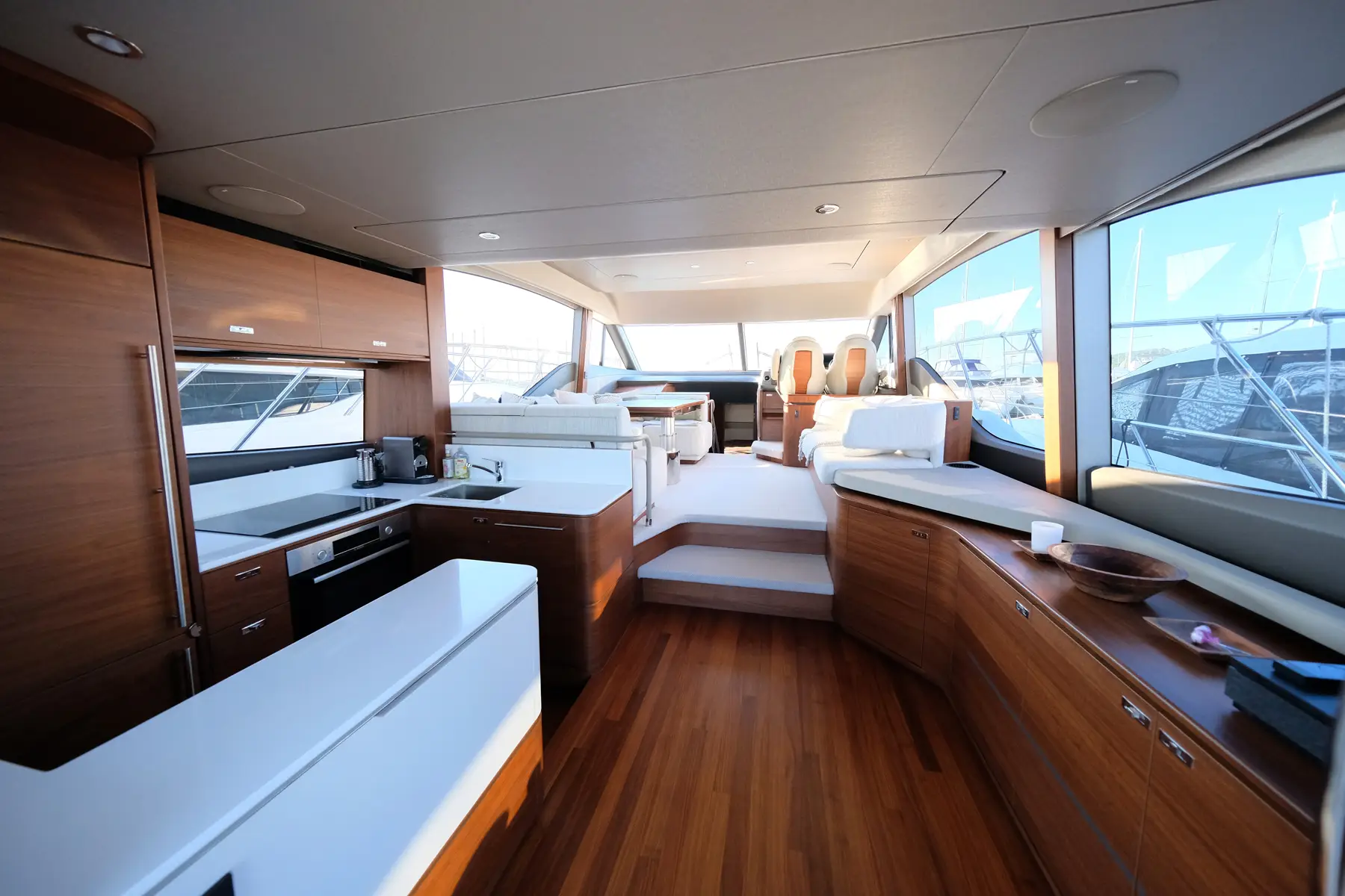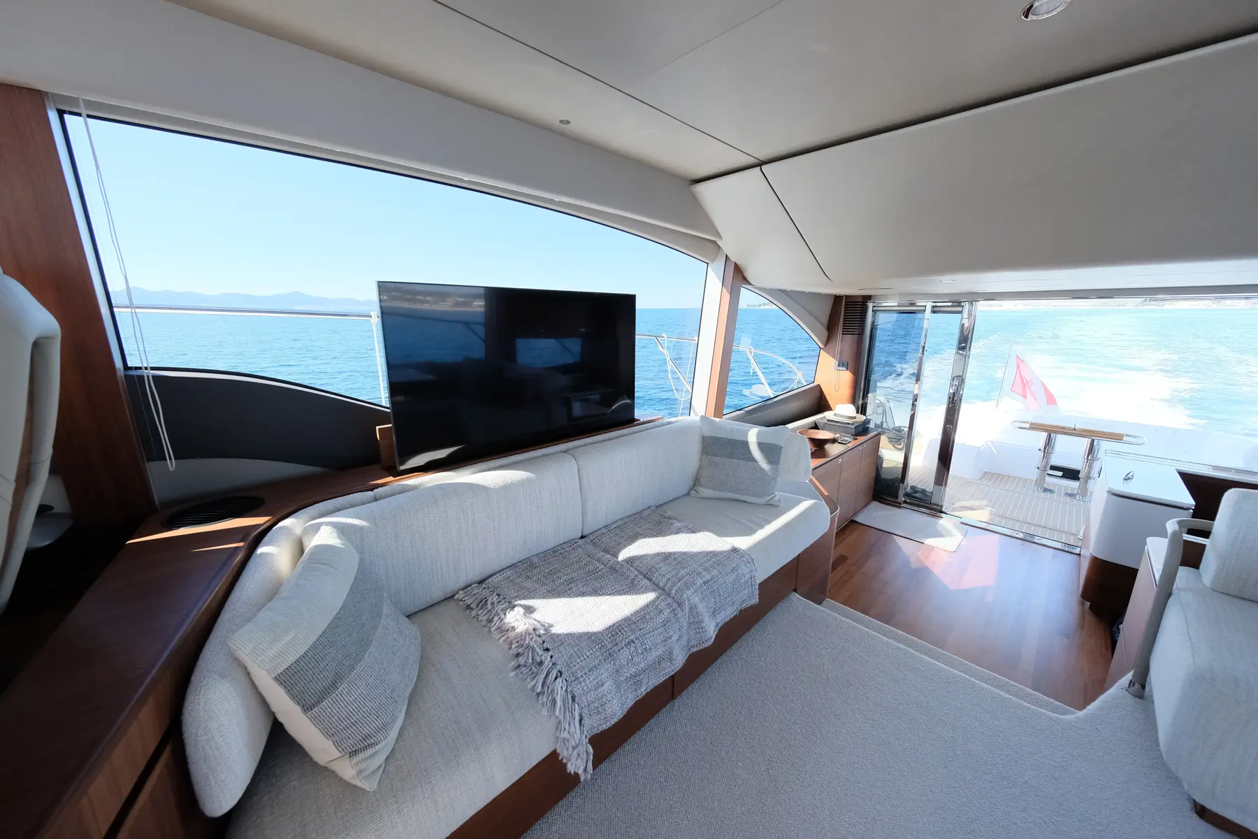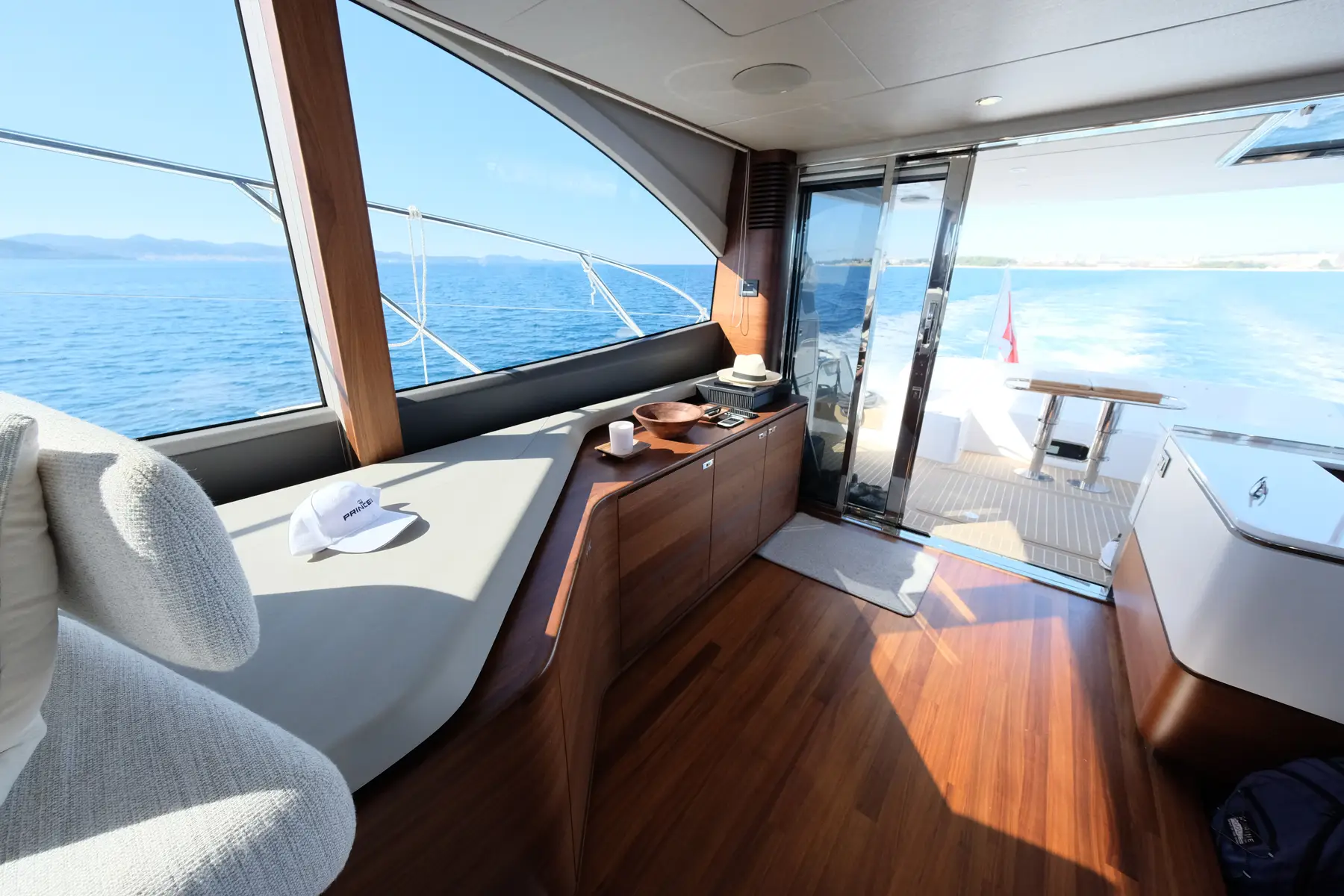 Die Princess F55, handgefertigt in höchster Qualität bietet Platz für die ganze Familie. 3 Kabinen, 2 Bäder ein äußerst geräumiger Salon mit ausladenden Fensterscheiben, welche die Außenwelt gefühlt nach Innen holen. Viel Licht, viel Farbe und das schönste Lebensgefühl erfahren Sie hier auf dieser Yacht.