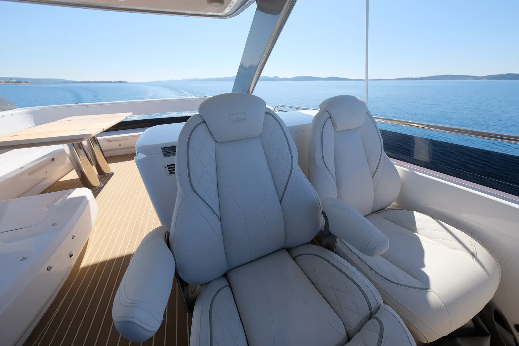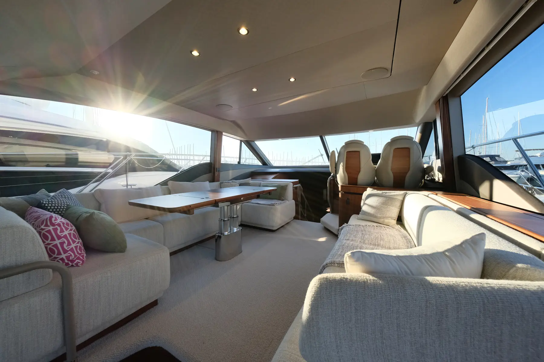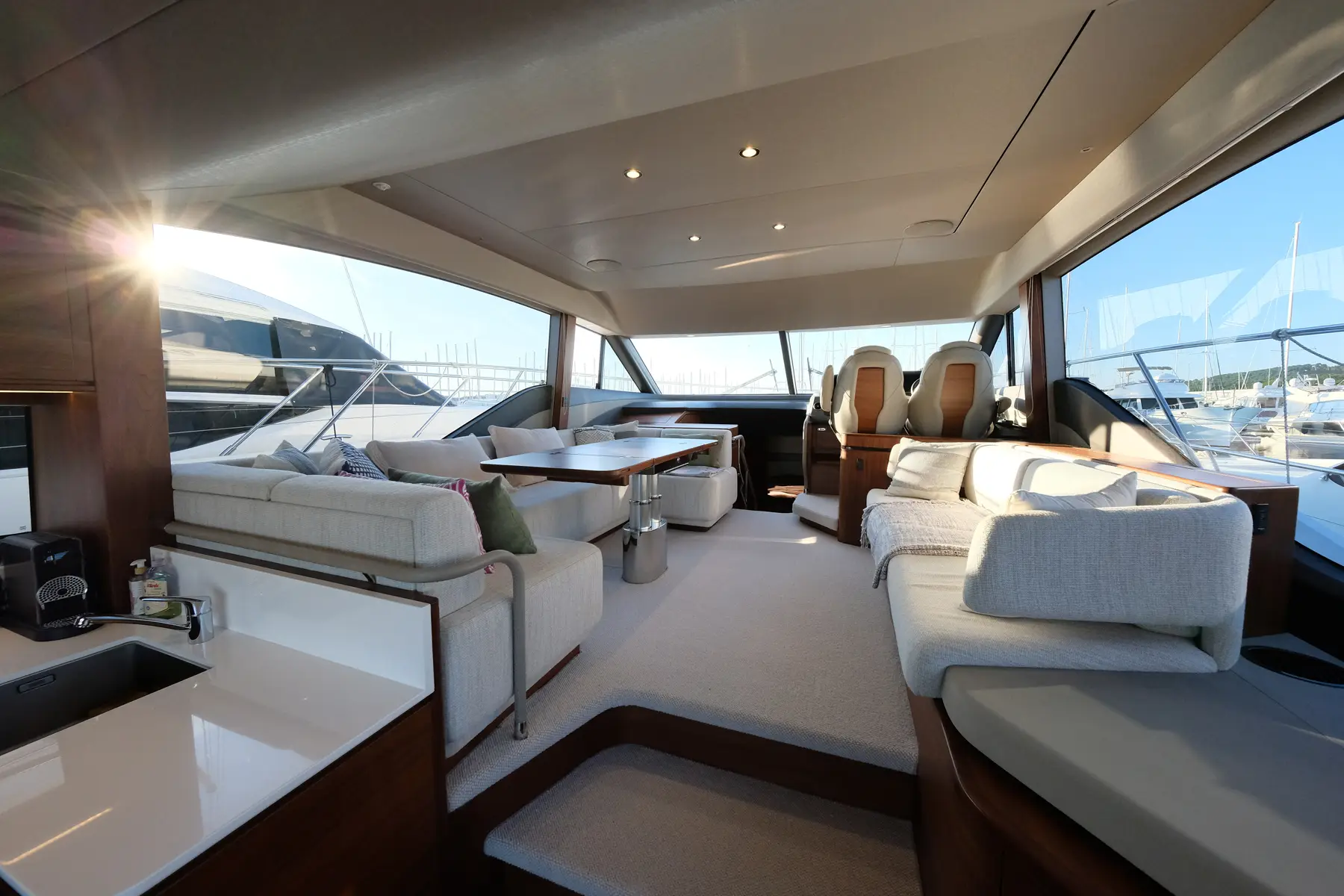 Die Princess F55, handgefertigt in höchster Qualität bietet Platz für die ganze Familie. 3 Kabinen, 2 Bäder ein äußerst geräumiger Salon mit ausladenden Fensterscheiben, welche die Außenwelt gefühlt nach Innen holen. Viel Licht, viel Farbe und das schönste Lebensgefühl erfahren Sie hier auf dieser Yacht.